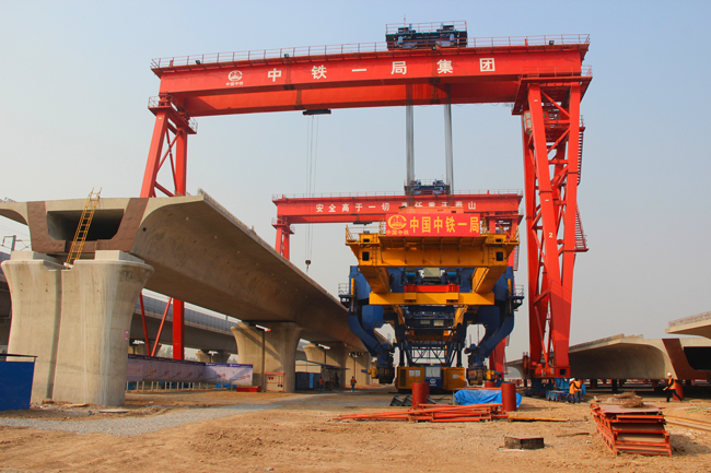 石濟客專項目架橋機順利完成上橋