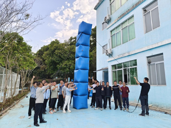 壓軸項(xiàng)目"合力筑塔"將活動(dòng)推向高潮。這項(xiàng)被譽(yù)為"團(tuán)隊(duì)默契試金石"的挑戰(zhàn),要求各隊(duì)派出8名隊(duì)員,通過牽引繩索協(xié)同搭建8層氣塔,用時(shí)最少者獲勝。只見四名"平衡大師"屏息凝神牽引四向繩索,維持著穩(wěn)定,兩名"結(jié)構(gòu)工程師"托舉已建塔層,兩名"高空作業(yè)手"以倒金字塔的方式精準(zhǔn)落位組件,隊(duì)長傳達(dá)著精確的指令,隊(duì)員們則迅速同步調(diào)整,當(dāng)最后一塊氣塔組件歸位時(shí),兩支隊(duì)伍不約而同響起雷鳴般的掌聲,凝結(jié)著跨崗位協(xié)作的智慧結(jié)晶。