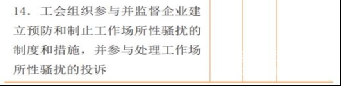 訓工作。工會參與用人單位對工作場所性騷擾投訴或舉報的處理過程, 發(fā)現(xiàn)其中存在任何問題,均應及時提出改正建議。