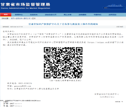 公司通過甘肅省知識產權保護中心備案