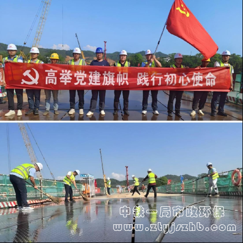 項(xiàng)目采用“先灑水降塵、后清掃收集”的科學(xué)方式,確保各環(huán)節(jié)符合環(huán)保標(biāo)準(zhǔn),高效完成清掃。“高舉黨建旗幟,踐行初心使命”主題活動(dòng)同步開展。黨員同志帶頭沖鋒,在清掃一線踐行責(zé)任擔(dān)當(dāng),圍繞黨建引領(lǐng)項(xiàng)目建設(shè)、提升工程質(zhì)量,以及常態(tài)化揚(yáng)塵治理、強(qiáng)化上猶江防污染工作等話題開展了熱烈討論。